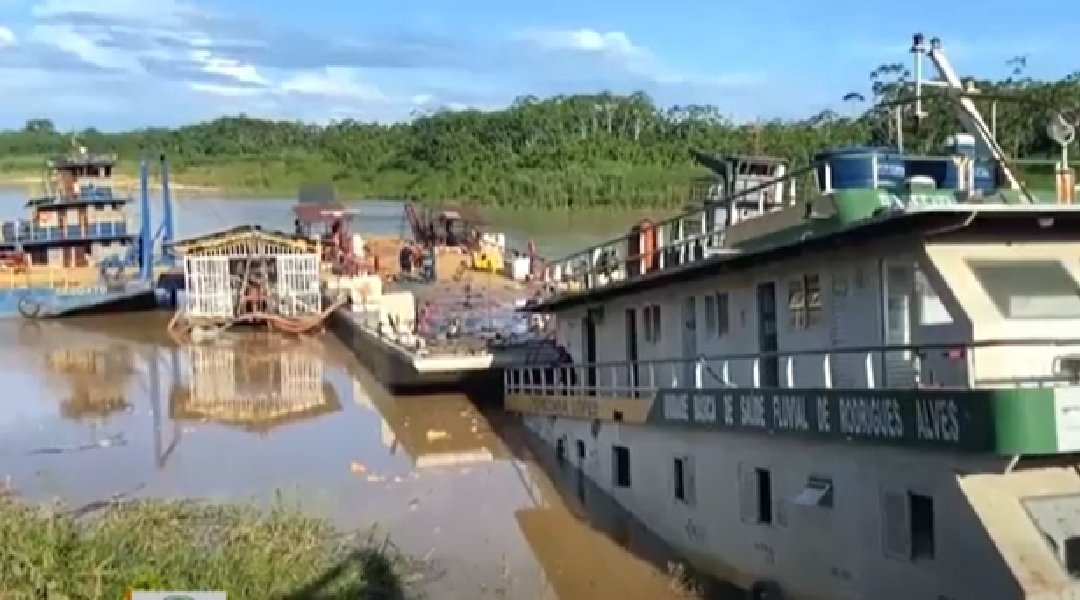A Unidade Básica de Saúde Fluvial de Rodrigues Alves, ancorada na comunidade Agrovila do Muju, tombou após encalhar em um banco de areia. O incidente deixou mais da metade da estrutura da balsa submersa nas águas do Rio Juruá, gerando preocupações sobre a continuidade dos serviços de saúde essenciais para a população ribeirinha.