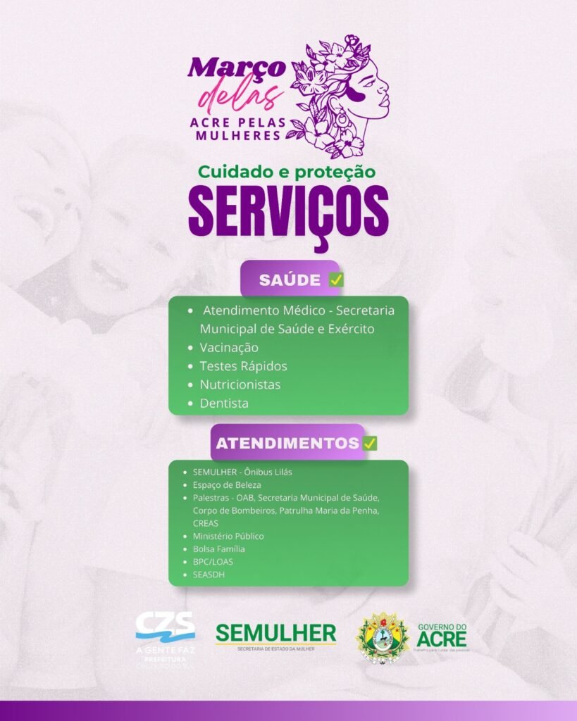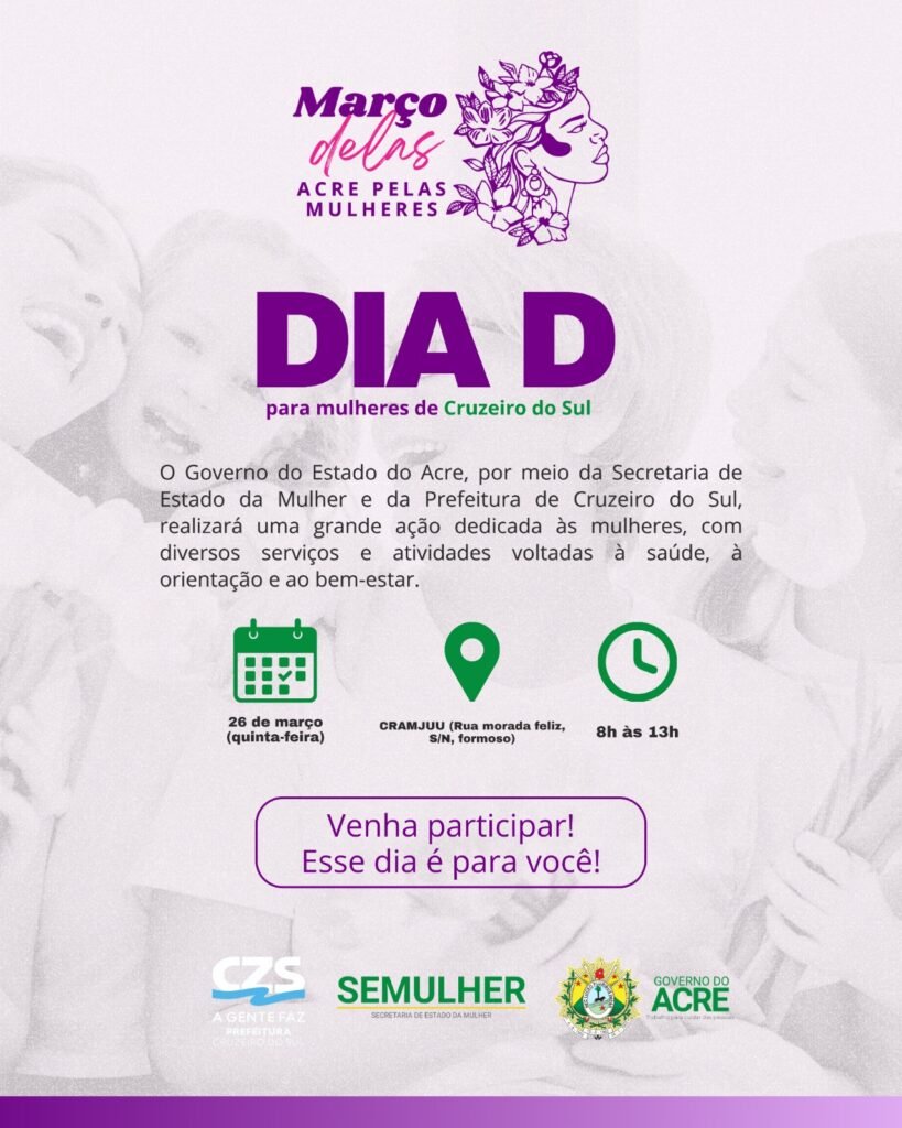 Uma programação especial voltada ao público feminino será realizada nesta quinta-feira (26), em Cruzeiro do Sul, como parte das atividades do mês dedicado às mulheres.