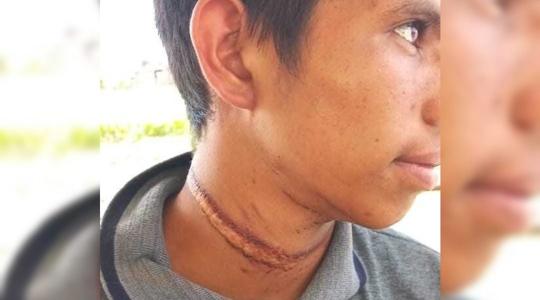 O jovem foi socorrido por colonos e encaminhado para o hospital da cidade. Nas imagens divulgadas pela imprensa é possível ver a marca que ficou do acidente.