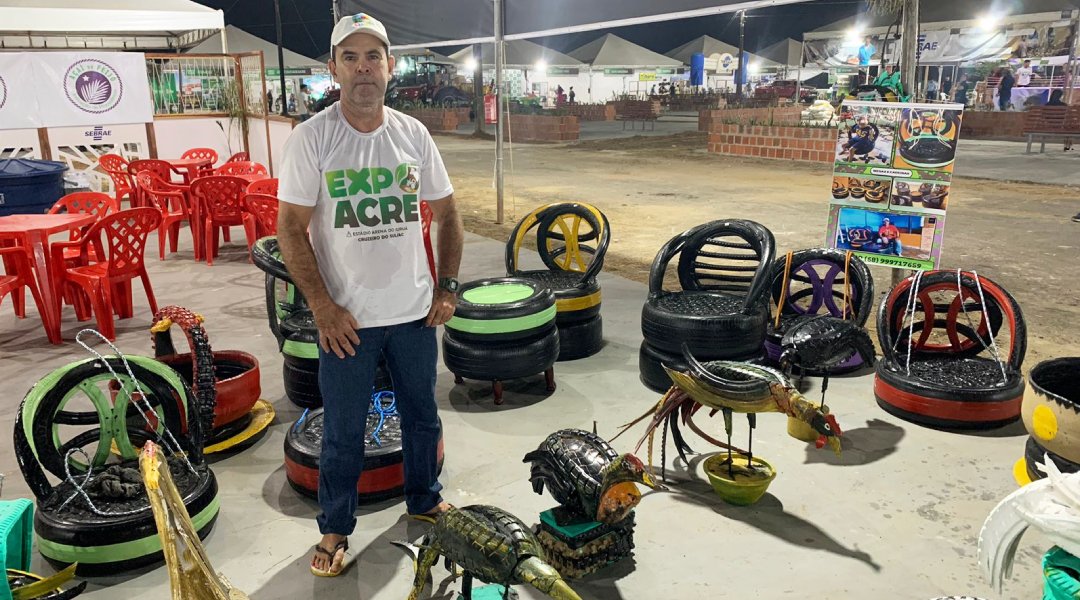 Na Expoacre Juruá de 2024, um dos destaques foi o artesão Ozanildo Rodrigues da Costa, de Mâncio Lima. Ele expôs suas criativas peças de arte feitas a partir de pneus reciclados, atraindo a atenção dos visitantes.