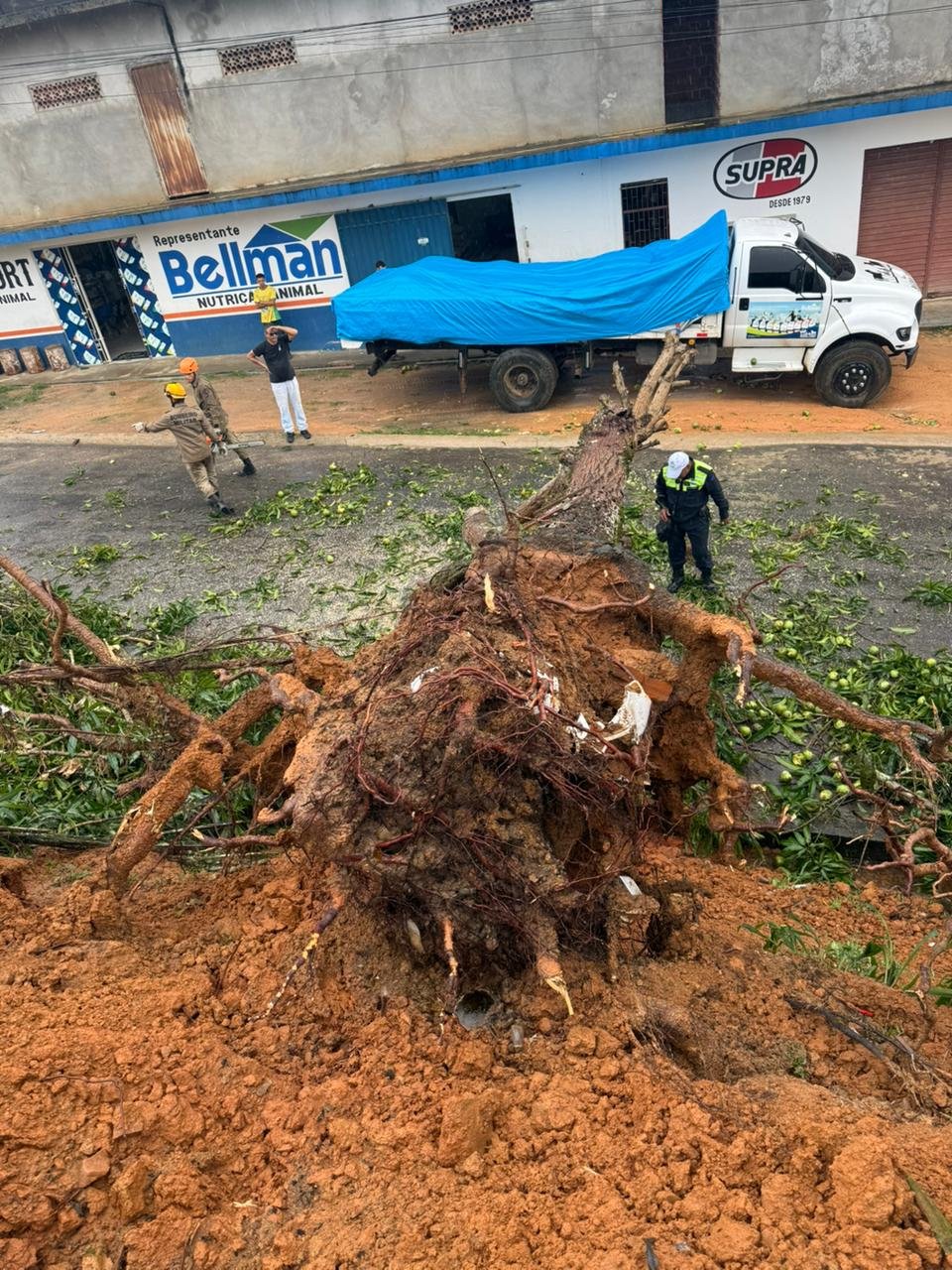 Um forte temporal registrado na tarde desta segunda-feira (8) provocou a queda de uma mangueira de grande porte na Rua Pedro Teles, no bairro João Alves, em Cruzeiro do Sul. A árvore tombou completamente sobre a via, impedindo o tráfego de veículos e colocando em risco a segurança de moradores.