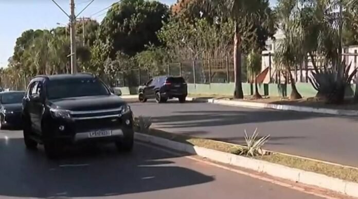 Parte do comboio que levava o ex-presidente Jair Bolsonaro (PL) de sua residência, em Brasília, para colocar a tornozeleira eletrônica
