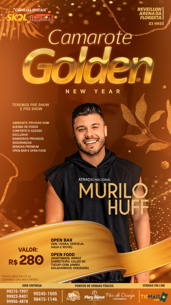 O Réveillon da Arena da Floresta com o show de Murilo Huff, ex-marido de Marília Mendonça, vai fechar este ano e abrir um 2024 repleto de esperança e novos tempos. No objetivo de proporcionar um ambiente mais especial ao público, o setor empresarial vai disponibilizar o camarote “Golden New Year” oferecendo um ambiente confortável.