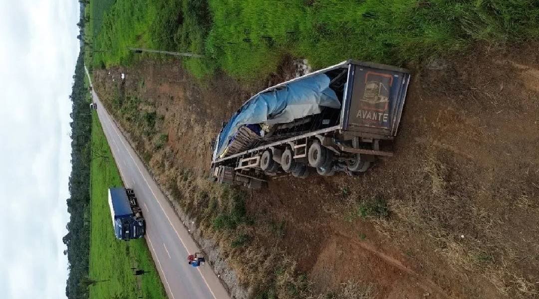 O veículo, que partiu de Cruzeiro do Sul (AC) com destino a Cuiabá (MT). A luminosidade dos faróis altos de um veículo que trafegava no sentido oposto ofuscou a visão do motorista. Em decorrência disso, o condutor perdeu o controle e saiu da pista. Ao tentar retornar, não conseguiu devido ao desnível acentuado do acostamento, o que provocou o tombamento da carreta.