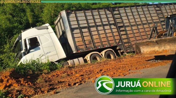 Um susto marcou a tarde desta quarta-feira (01) na BR-364, no trecho entre Sena Madureira e Manoel Urbano. Uma carreta utilizada para transporte de gado, mas que no momento do acidente não estava carregada, acabou saindo da pista após o condutor perder o controle da direção.