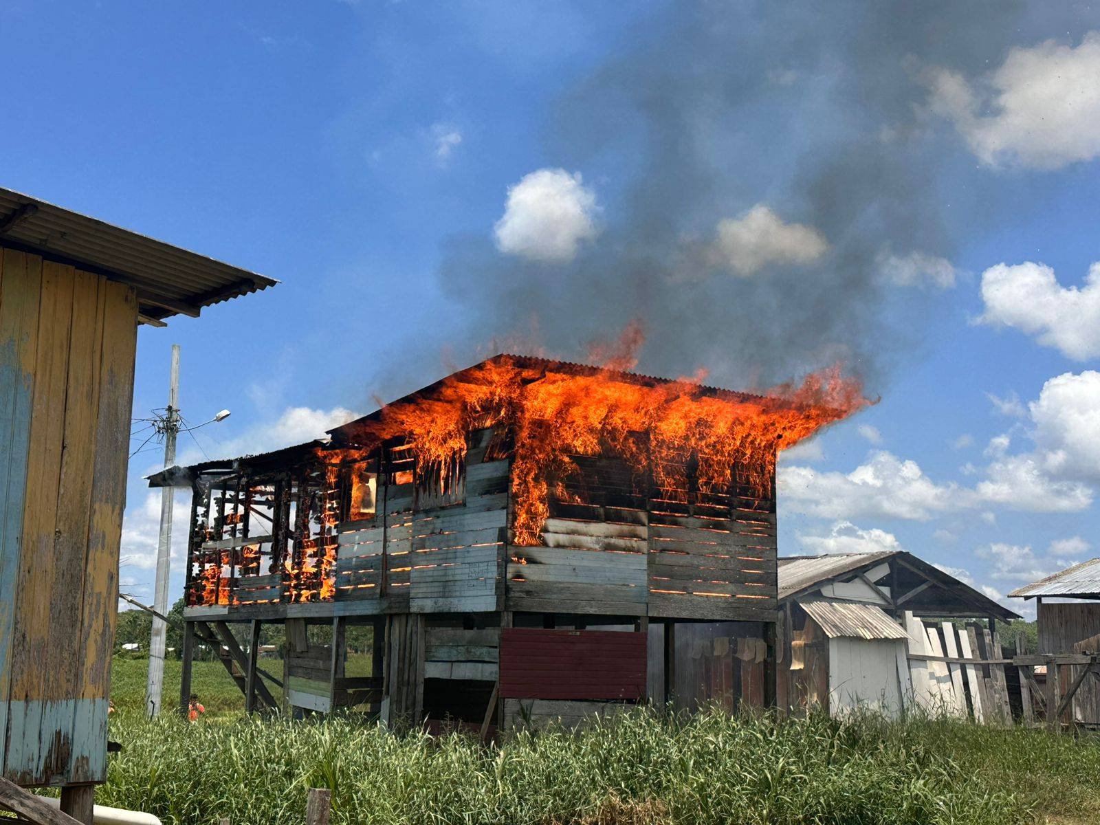 No início da tarde desta quarta-feira (18), uma casa de madeira localizada no bairro Lagoa, em Cruzeiro do Sul, foi destruída pelo fogo, chamando atenção dos moradores da região.