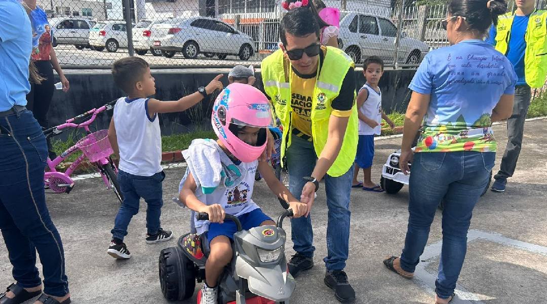 Cerca de 100 alunos da Escola Jardim São Francisco em Cruzeiro do Sul, Acre, comparecerem na manhã desta segunda-feira ao pátio da Circunscrição Regional de Trânsito (Ciretran) para uma ação educativa de conscientização.
