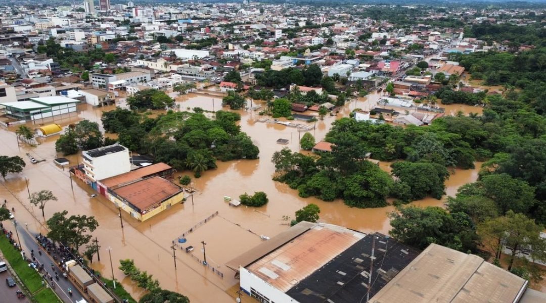 Cidade de Cacoal é atingida pela enchente de pelos menos cinco rios — Foto: Reprodução/Redes Sociais