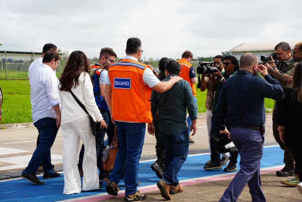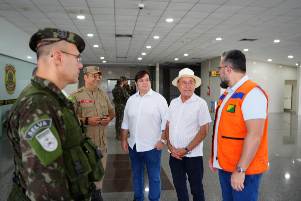 Cheias no Acre – Alan Rick recepciona ministros no aeroporto de Rio Branco