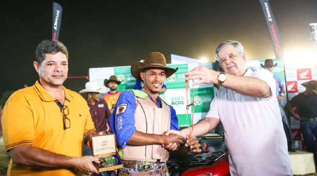Júnior Moura, do município de Tarauacá, se consagrou tricampeão do rodeio da Expoacre Juruá. O título conquistado agora em 2024 se une aos títulos do ano de 2019 e 2022. “É muito gratificante chegar até aqui. É Deus que me dá forças para montar nesses touros. Agora vou levar mais um título para casa, para a minha cidade”, contou o tricampeão.