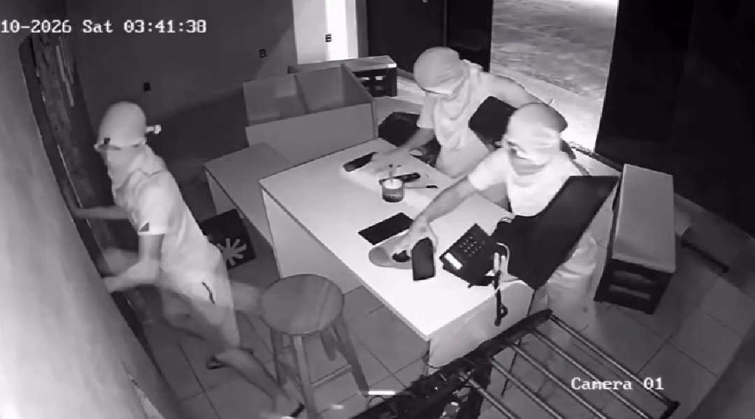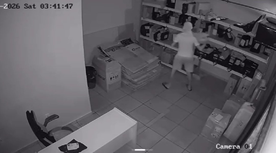 No interior da loja, os criminosos derrubaram balcões, reviraram o ambiente e subtraíram diversos itens, como computador, teclado de computador, telefone e máquina de cartão. Em alguns momentos, os suspeitos aparentam indecisão e chegam a devolver objetos que haviam separado, escolhendo produtos considerados mais fáceis de transportar.