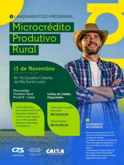 O programa integra a linha PRONAF B – CAIXA e busca estimular a produção rural, oferecendo crédito com condições facilitadas para pequenos agricultores. Os recursos poderão ser aplicados em produção, compra de equipamentos, infraestrutura e outras melhorias no campo, promovendo o fortalecimento da economia rural.