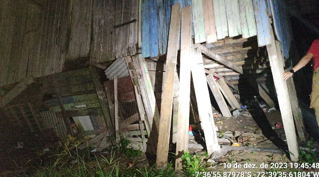 No último domingo, 10, em Cruzeiro do Sul, no bairro Tiro ao Alvo, o Corpo de Bombeiros foi acionado para uma ocorrência em uma residência de madeira, vítima de um deslizamento de terra ocasionado pelas intensas chuvas. O incidente resultou na instabilidade estrutural da casa, deixando-a em condições difíceis e impedindo que os moradores retornem ao local.