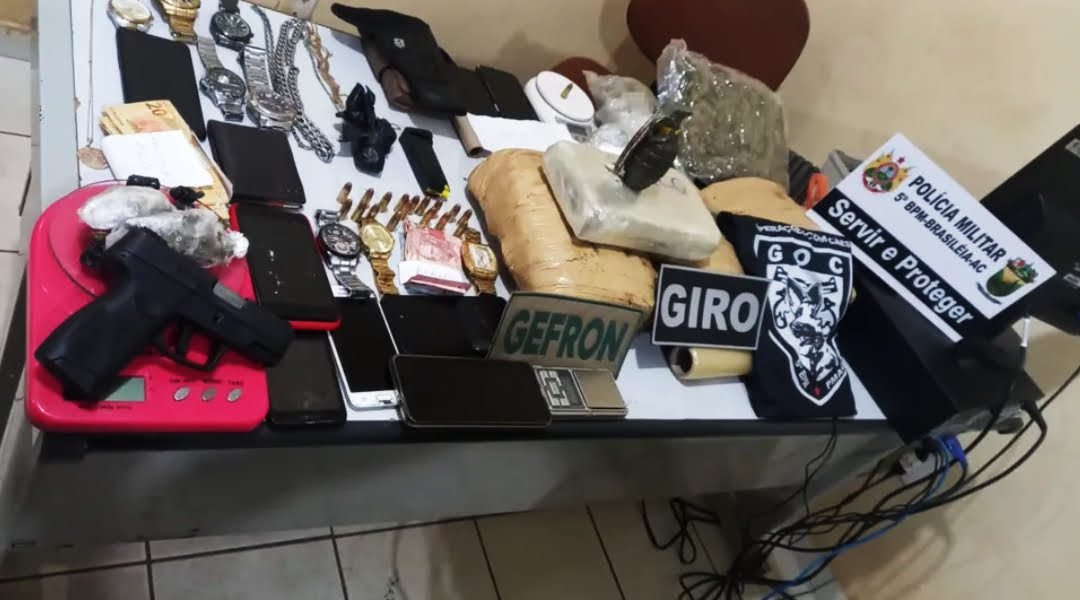 Epitaciolândia, acabaram presos pela PM e Grupo Especial de Fronteira (Gefron). Ainda em busca dos suspeitos, a polícia apreendeu munições, maconha, balanças de precisão e dinheiro.