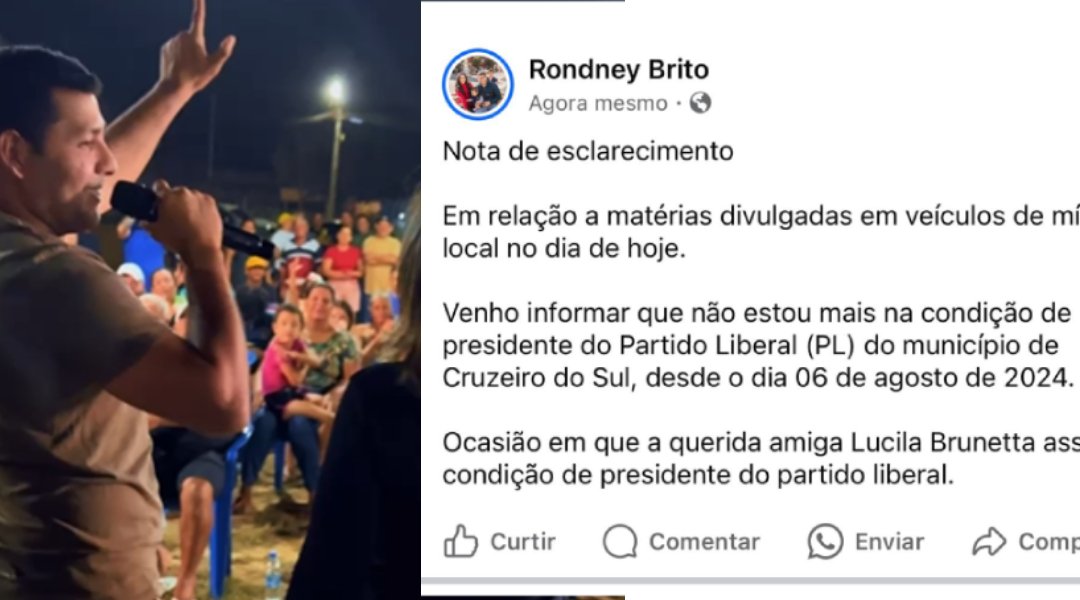 Em nota divulgada nas redes sociais, o médico Rondney Brito esclareceu que não ocupa mais a presidência do Partido Liberal (PL) em Cruzeiro do Sul. O pronunciamento de Brito foi motivado por uma matéria publicada no Juruá Online, na qual o médico foi apontado como apoiador da candidata à prefeitura de Cruzeiro do Sul, Jéssica Sales, e mencionado como presidente do partido.