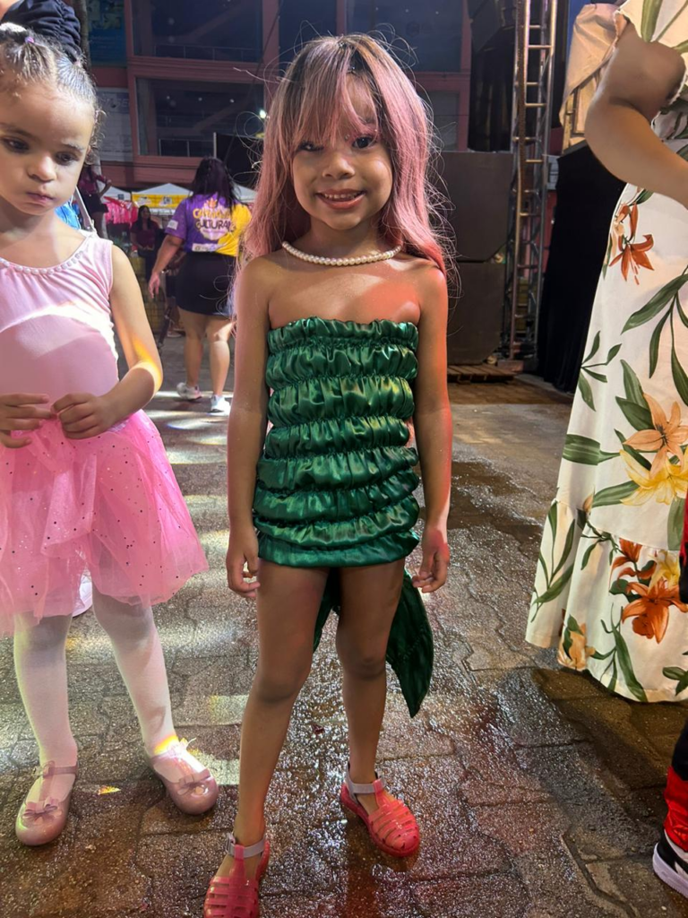 Larissa Abdalah também compartilhou o processo de criação da fantasia de sereia para sua sobrinha, baseada na personagem Iara. Com customizações de última hora na cauda e uma maquiagem elaborada, a pequena estava pronta para brilhar na competição.