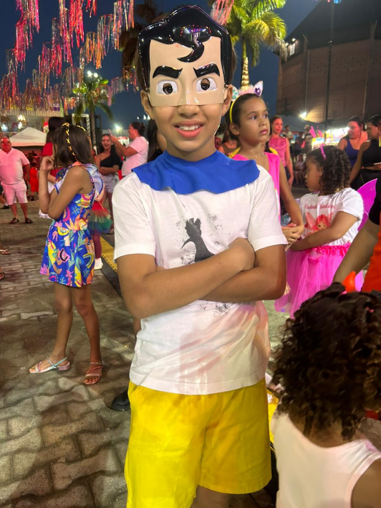 João Gabriel, de apenas nove anos, optou pela fantasia do Super-Homem, destacando seu amor por super-heróis e sua escolha pelo ícone mundialmente conhecido. Ele ressaltou que, no ano anterior, se vestiu como Homem-Aranha, revelando sua paixão por personagens heroicos.