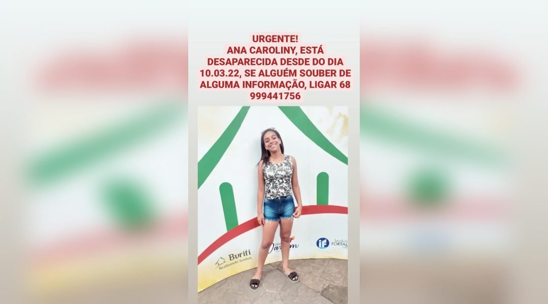 Caso alguém tenha alguma informação acerca do paradeiro da jovem, basta entrar em contato com a mãe através do telefone (68) 99944-1756.
