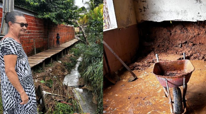 A aposentada Maria Amélia, de 74 anos, disse que mora no local há muitos anos e que o alagamento só voltou a acontecer recentemente, após o córrego deixar de receber manutenção. Ela relatou que equipes antes faziam limpeza periódica, mas isso não ocorre há bastante tempo. Além do medo das inundações, conta que a filha com deficiência fica apavorada sempre que começa a chover.
