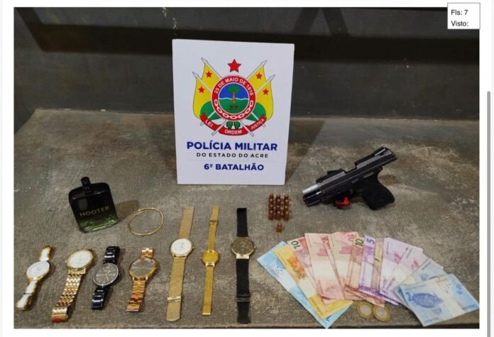 Durante a ação, a polícia recuperou parte dos bens roubados e apreendeu um revólver calibre .38, com 13 munições intactas.