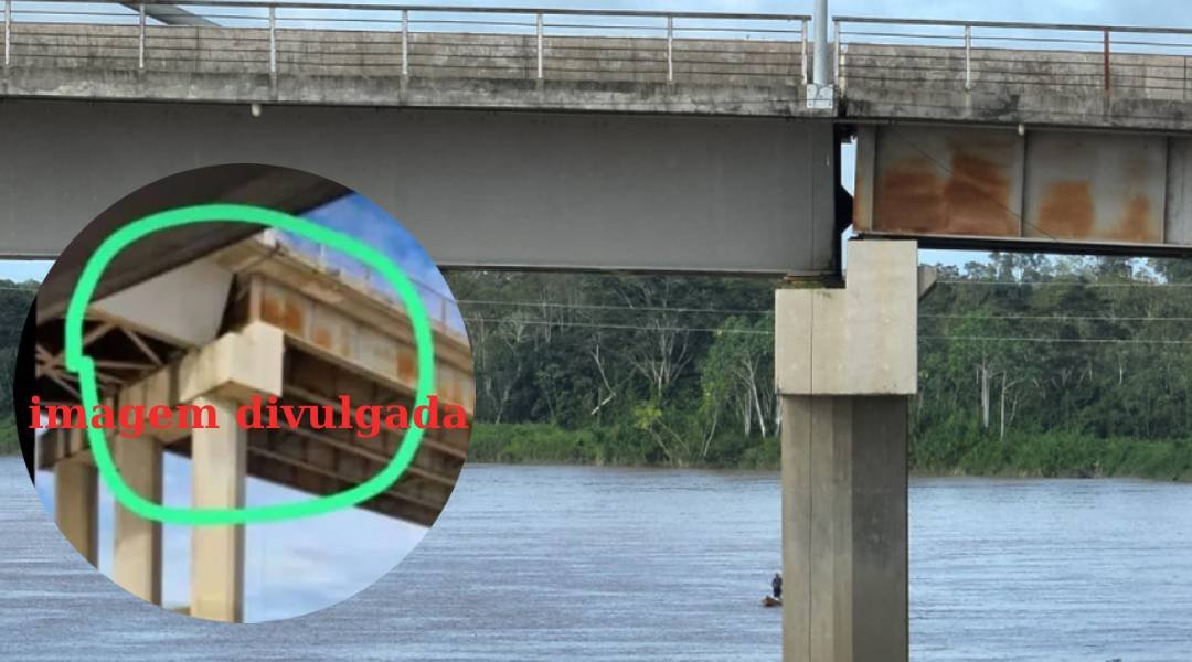 Circula em Cruzeiro do Sul e região uma foto que sugere um possível deslocamento na estrutura da Ponte da União, localizada na cidade de Cruzeiro do Sul, Acre. A imagem mostra um dos blocos que sustentam a ponte aparentemente afastado de seu lugar de origem, gerando especulações e preocupação entre os moradores.