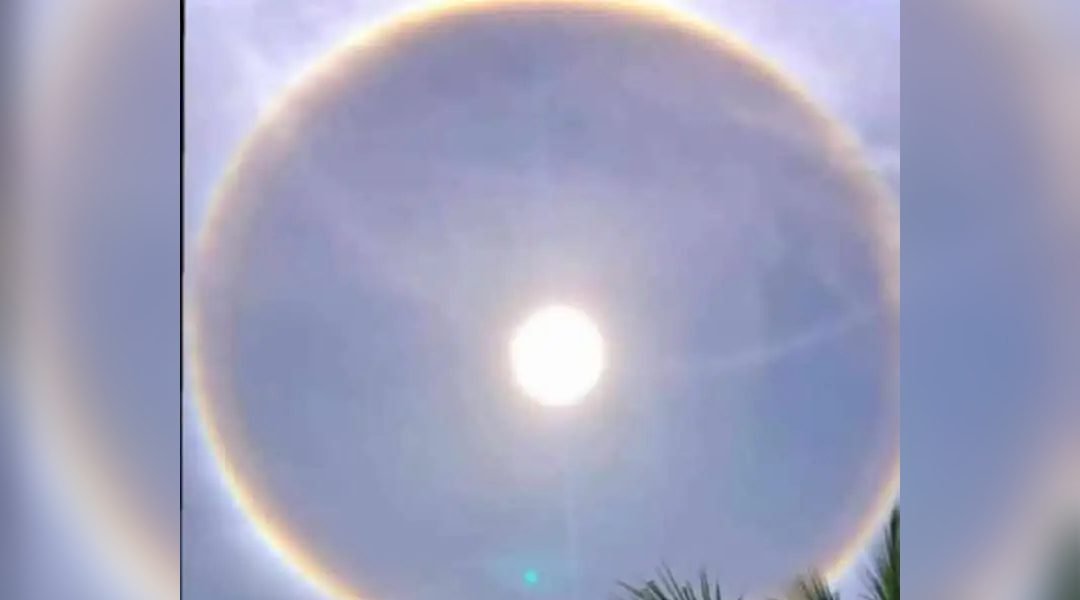 No céu de Cruzeiro do Sul, na manha deste sábado, 07, foi possível registrar mais um halo solar e alguns moradores flagraram o momento do fenômeno, que forma uma círculo colorido ao redor do sol.
