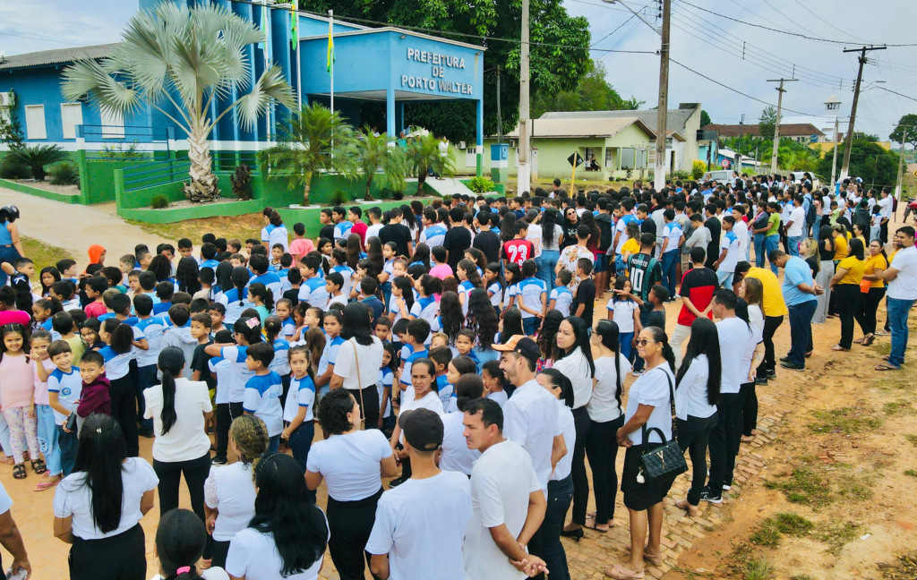Na manhã desta sexta-feira, 21 de junho, a cidade de Porto Walter celebrou o início das festividades de seu 32º aniversário com uma cerimônia de hasteamento dos pavilhões realizada em frente à Prefeitura. O evento contou com a presença do prefeito César Andrade, alunos das escolas municipais e diversas autoridades locais.