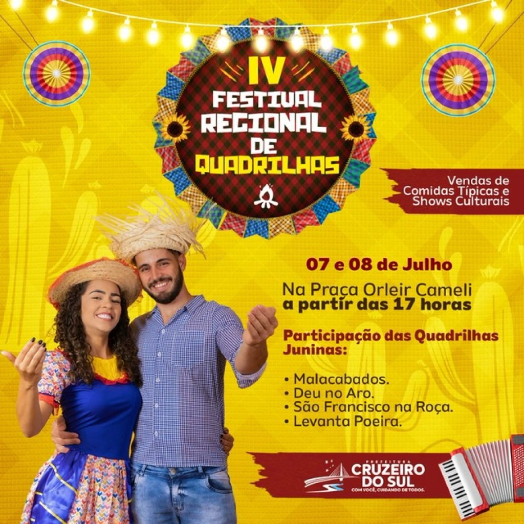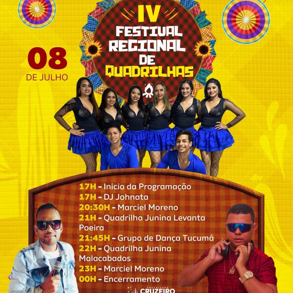 O 4º Festival Regional de Quadrilhas de Cruzeiro do Sul acontecerá nos dias 07 e 08 de julho na Praça Orleir Cameli.