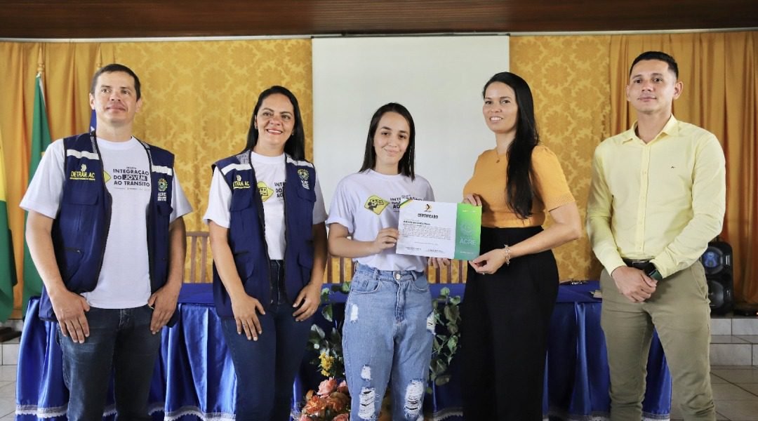 Mais 58 estudantes da rede pública estadual foram certificados pelo governo do Acre, por meio do Departamento Estadual de Trânsito (Detran), no Curso de Legislação do Trânsito, nesta quarta-feira, 27, em Cruzeiro do Sul. A formação foi oferecida por meio de parceria entre a autarquia e a Secretaria de Estado de Educação, Cultura e Esportes (SEE).