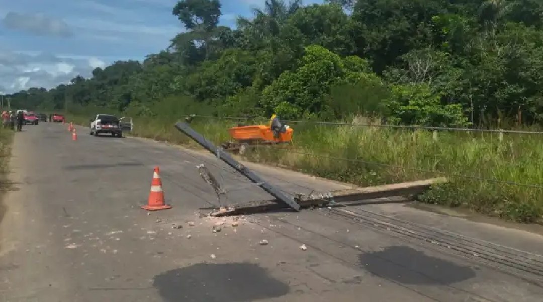 Um carro que carregava uma lancha derrubou um poste na manhã desta sexta-feira (16), na rodovia AC 405, estrada de Mâncio Lima, interior do Acre. Apesar da gravidade, ninguém saiu ferido.