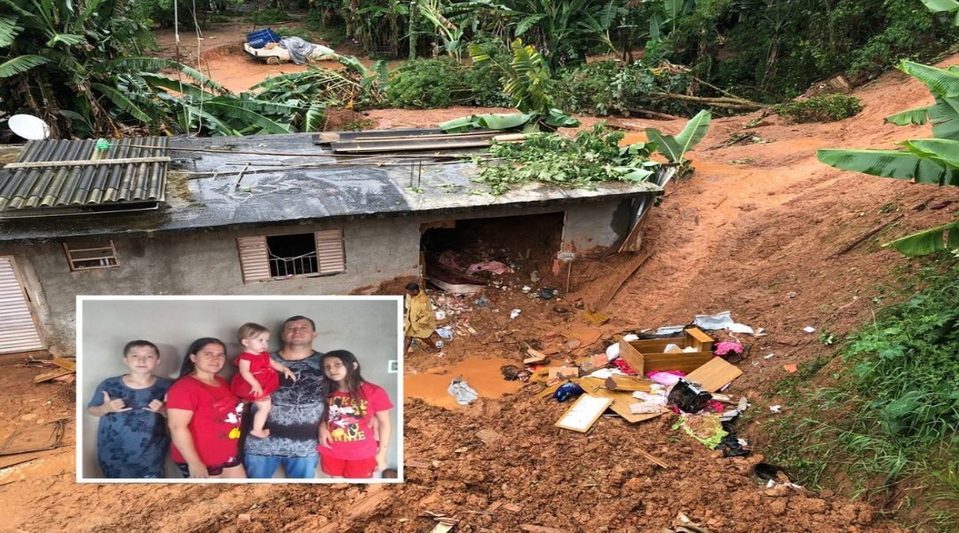 O desmoronamento foi registrado por volta das 6h de domingo (30), durante uma forte chuva na cidade. Segundo os bombeiros, a lama invadiu a casa e destruiu móveis e objetos.