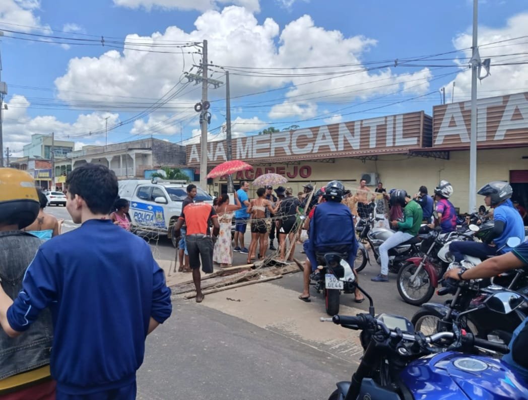 “Aucilene Martins, também moradora, destacou a gravidade da situação:”Não tem água nem para beber. A gente fechou para cobrar as autoridades para que eles venham fazer alguma coisa. Porque sem água ninguém vive.