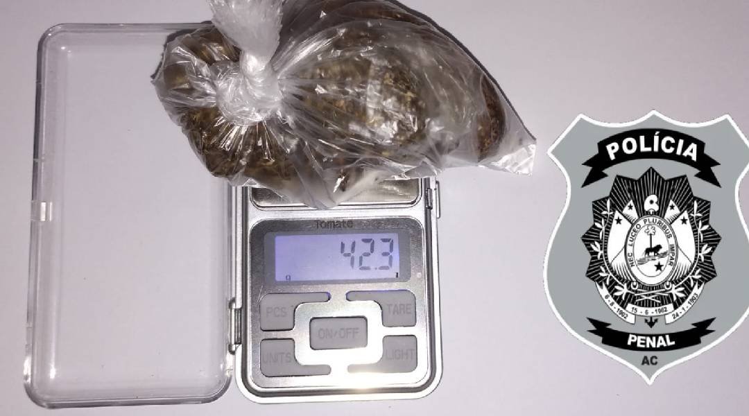 Questionada sobre a natureza do volume identificado, a mulher confessou transportar a droga em seu corpo. Em seguida, procedeu à remoção do pacote, cujo peso era de 42,3 gramas, apresentando características parecidas com maconha. A visitante entregou a substância. Posteriormente, foi conduzida à delegacia da Polícia Civil.