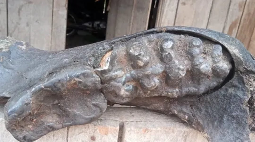 Com a seca dos rios nesta época do ano, o morador precisou empurrar a canoa quando passou por uma parte ainda mais seca, quando pisou em parte de uma das “peças” e achou estranho, pois não sabia do que se tratava.