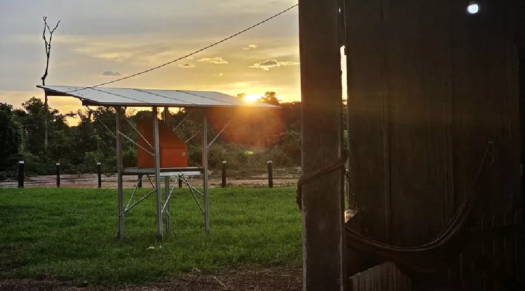 Imagem de placa solar em comunidade indígena no Mato Grosso