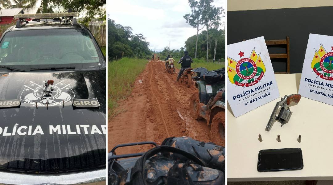 Durante mais uma ação da Operação P.R.O.T.E.T.O.R das Fronteiras e Divisas, a Polícia Militar, por meio da Companhia de Policiamento Especializado do 6° BPM, efetuou a prisão de um indivíduo identificado como M.L.T., de 30 anos, por porte ilegal de arma de fogo. O episódio ocorreu no Ramal do Havaí, nas proximidades da faixa de fronteira entre o Acre e o Peru.