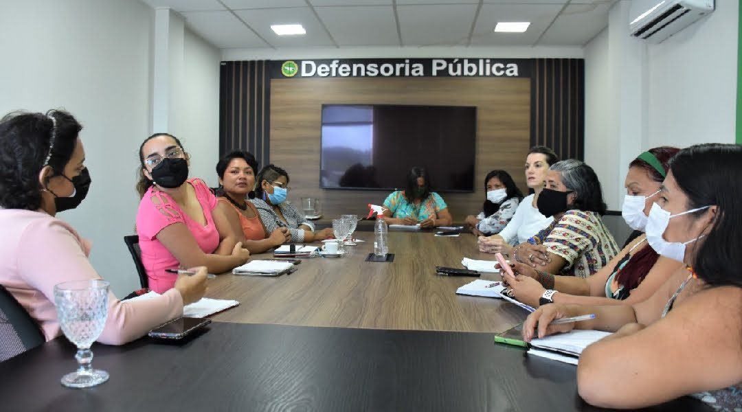 Participaram da reunião Joana Mundurucu, da Federação do Povo Huni Kui do Estado do Acre – Fephac; Yoka Manchineri, Organização de Mulheres Indígenas do Acre, Sul do Amazonas e Noroeste de Rondônia (Sitoakore); Valdenira Huni Kui, Sitoakore e Fephac; Líbia Almeida, Instituto Xubuã; Edilaine Marques, Comissão Pró-Índio/Acre; Silviana, do Distrito Sanitário Especial Indígena (DSEI); Joseima Manchineri, mulher indígena e Larissa Damasceno, Subnúcleo de Direitos Humanos 1 da DPE/AC.