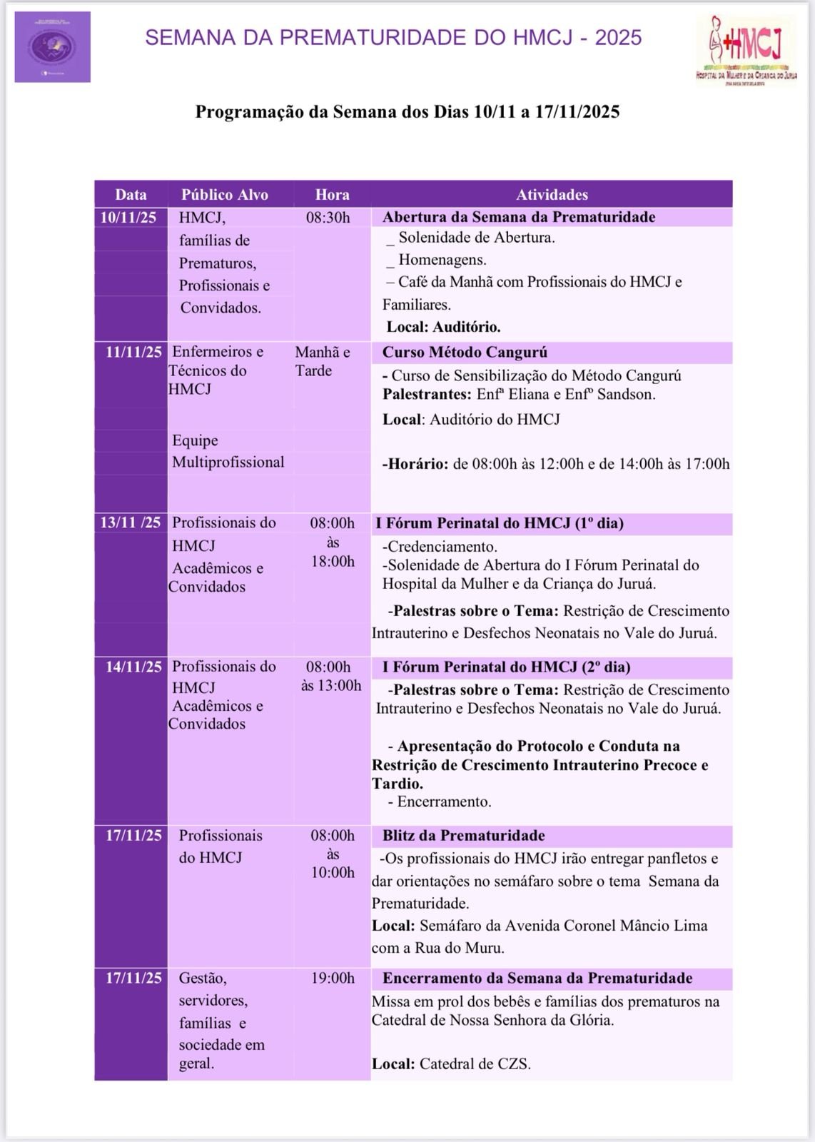 O fórum faz parte de uma programação que tem como objetivo sensibilizar a sociedade e os profissionais de saúde sobre os cuidados com os recém-nascidos e o apoio às famílias, especialmente nos casos de gestações de alto risco.