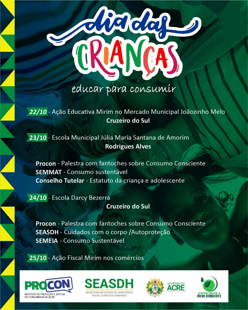 Entre os principais temas tratados, destacou-se o consumo consciente, promovido pelo Procon através de fantoches. Elissandra Rocha, chefe do setor de educação para o consumo do Vale do Juruá, destacou a importância da ação. “A criança, desde cedo, acaba colocando em prática aquilo que vê no dia a dia em sua família. Através da educação sobre esse tema que estamos trabalhando agora, elas ganham consciência. Consumir de forma consciente, evitando consumir apenas porque veem o colega ou algo na mídia. É uma maneira de a criança desenvolver consciência para consumir somente o que realmente é necessário para sua vida”.