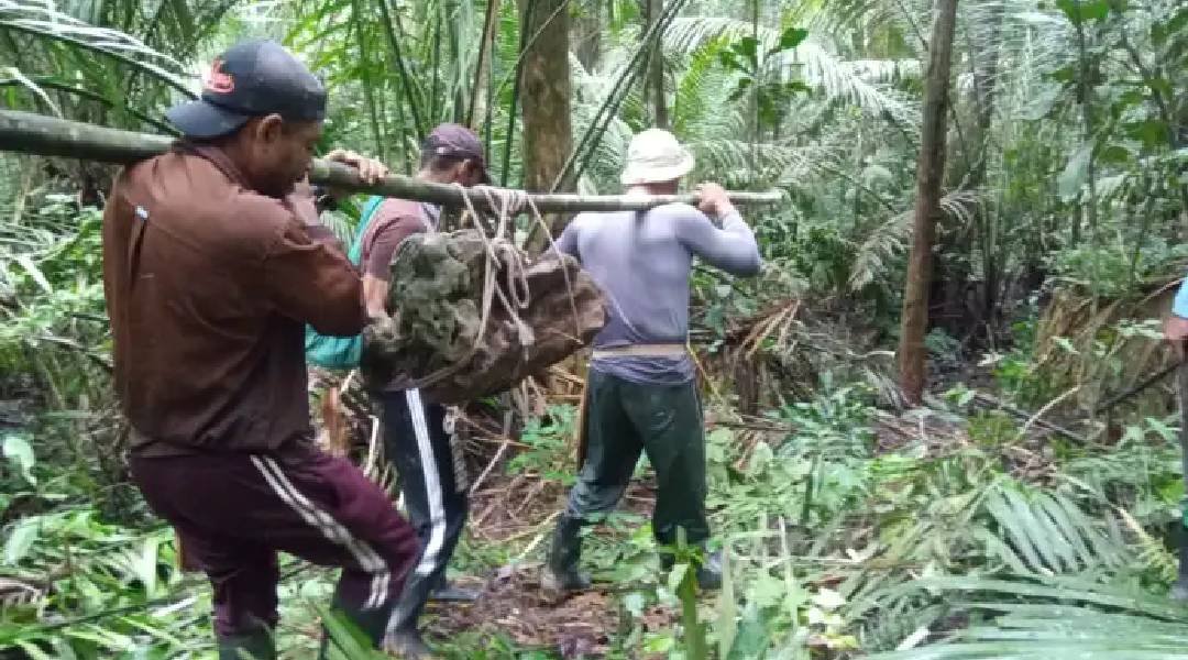 Imediatamente, o grupo de homens fez um grande esforço para escavar a terra e levar o objeto para a cidade, apesar de seu peso.