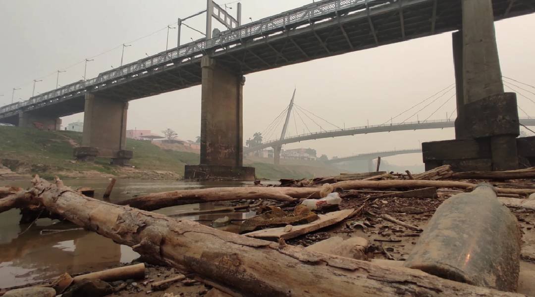 Toda a Bacia do Rio Acre está em alerta máximo devido à escassez de água.