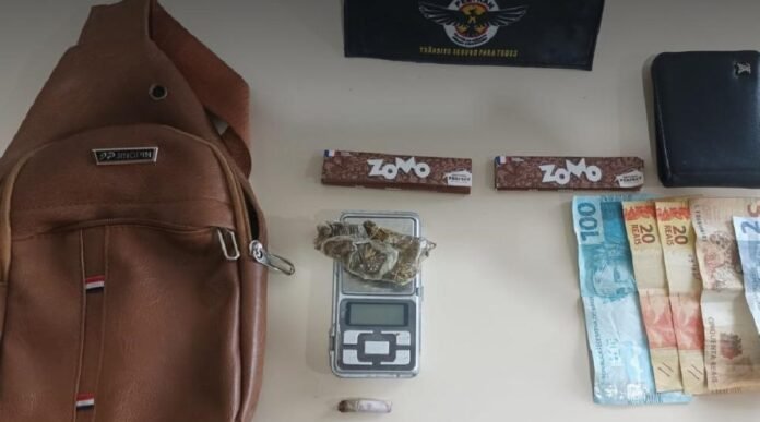 Na abordagem, os militares constataram sinais evidentes de alteração psicomotora, como olhos avermelhados, sonolência e dificuldade de equilíbrio. Durante a revista, foi encontrado material entorpecente análogo à maconha, além de objetos utilizados para o consumo da droga.