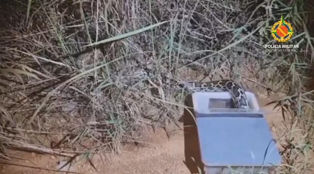 Um equipe do Batalhão de Polícia Militar Ambiental (BPMA) soltou, em uma área de mata no Distrito Federal, uma cobra píton, espécie exótica original da Ásia, após confundir o animal com uma jiboia. O caso ocorreu na quarta-feira (6), no Gama.