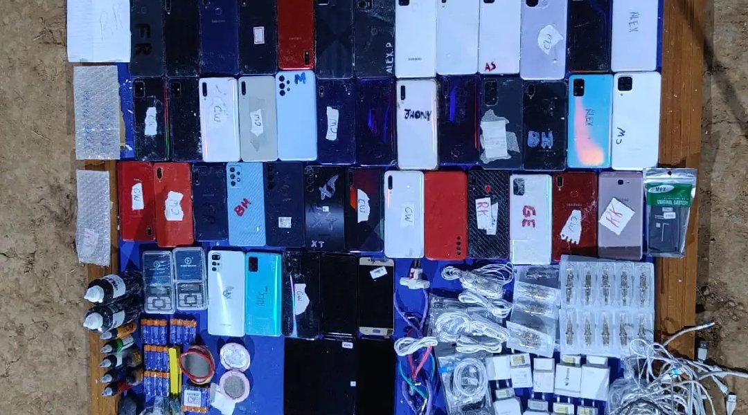Após feita a desmontagem da estrutura do freezer foram encontrados vários materiais ilícitos: mais de 40 celulares, chips, carregadores, cartões de memória, entre outros objetos.