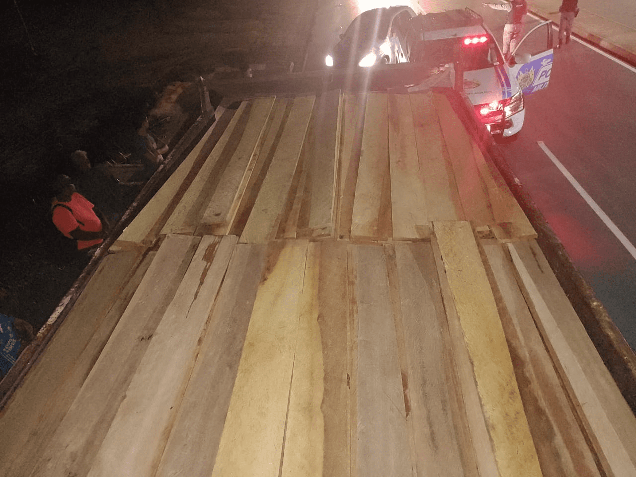 Na noite deste último domingo (8), a guarnição de serviço da Base Rodoviária, em patrulhamento pela AC-405, abordou um caminhão carregado de madeira tipo tábuas, peças e barrotes, sem o DOF (Documento de Origem Florestal). Aproximadamente 10m³ das espécies jacareúba, ucuuba, sapucaia, entre outras.