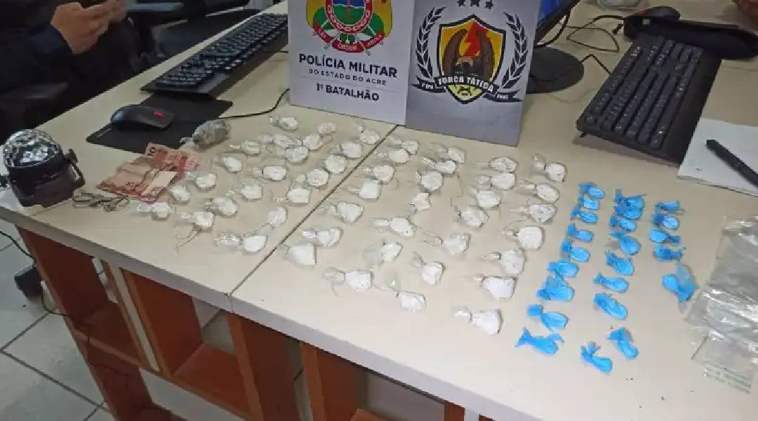 Na tarde desta segunda-feira, a Força Tática do 1° Batalhão efetuou a prisão de João Marcos Nascimento Oliveira, de 21 anos, acusado de tráfico de drogas. A ação ocorreu na rua Ingá, bairro Mocinha Magalhães, em Rio Branco, em uma região já conhecida pela intensa atividade de tráfico.
