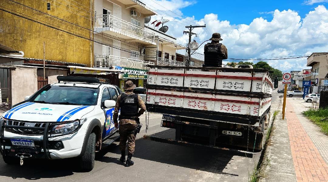 Polícia Militar realiza apreensão de madeira ilegal durante patrulhamento ambiental em Cruzeiro do Sul