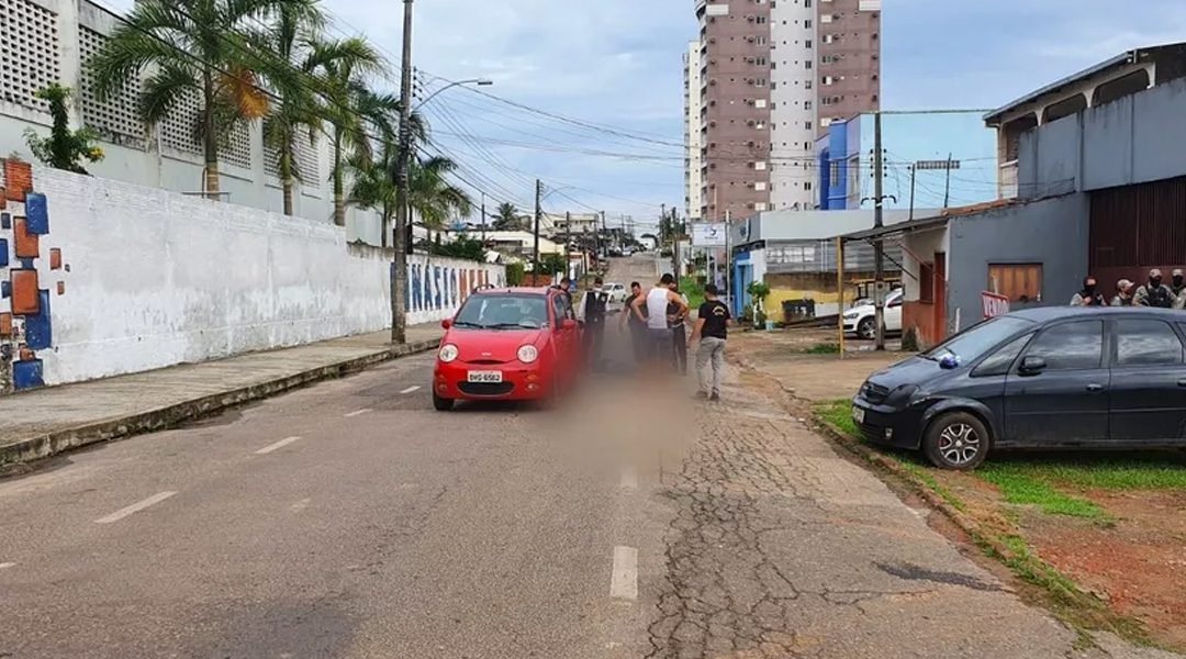 Vítima estava ao lado do seu carro, caída no chão, em frente a uma escola infantil — Foto: Andryo Amaral/Rede Amazônica