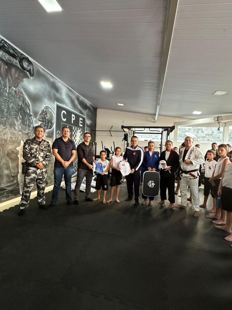 Nesta quinta-feira (3), o 6° Batalhão da Polícia Militar recebeu na sede do quartel da Companhia de Policiamento Especializado 13 quimonos, 4 capacetes de proteção e 2 aparadores de chutes para o programa Guarda-Mirim.