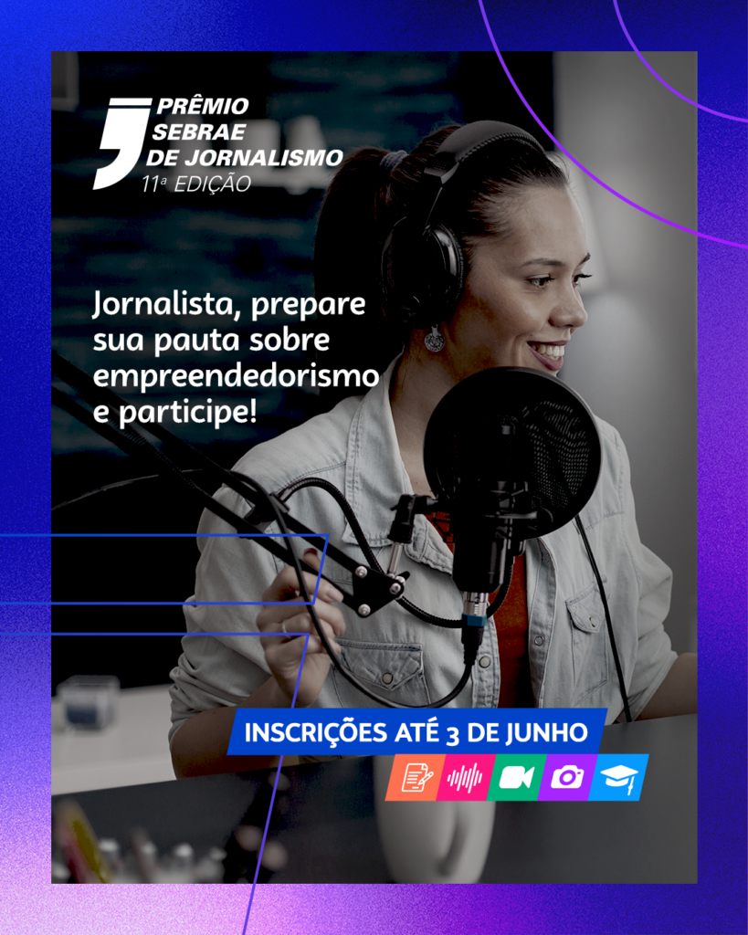 Reportagens veiculadas em emissoras de televisão e em canais de jornalismo nas plataformas digitais podem concorrer ao 11º Prêmio Sebrae de Jornalismo (PSJ). As inscrições estão abertas até o dia 3 de junho pelo site www.premiosebraejornalismo.com.br. Serão premiados os melhores conteúdos jornalísticos sobre empreendedorismo e pequenos negócios, veiculados entre 5 de junho de 2023 a 2 de junho de 2024.